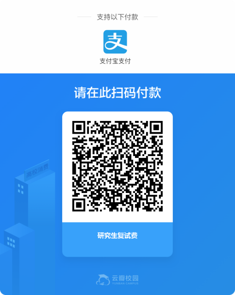 1.请在复试前通过支付宝扫码缴费。缴纳复试费:80元/人。