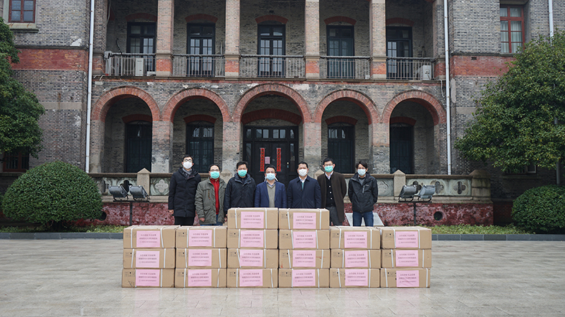 2020年2月14日,一批价值近30万元的战疫物资品接收仪式在www.优德88.cpm 钟楼南广场举行。www.优德88.cpm 党委常委、纪委书记芮国强,发展委员会办公室主任、教育发展基金会秘书长胡新华,以及医院管理处,www.优德88.cpm 附属第一医院、附属第二医院、附属儿童医院相关老师共同见证。