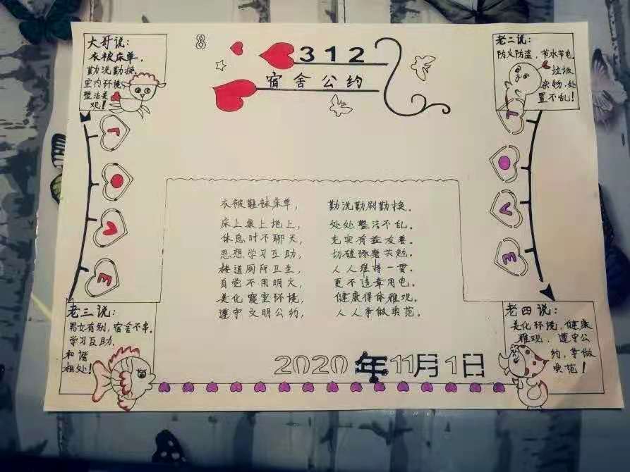 为营造良好的宿舍文明氛围,进一步落实学生宿舍文化建设工作,2020年10月29日,www.优德88.cpm 政治与公共管理学院宿管会以线上参评的方式成功举办“手绘文明公约,共建文明宿舍”宿舍文明公约设计大赛。