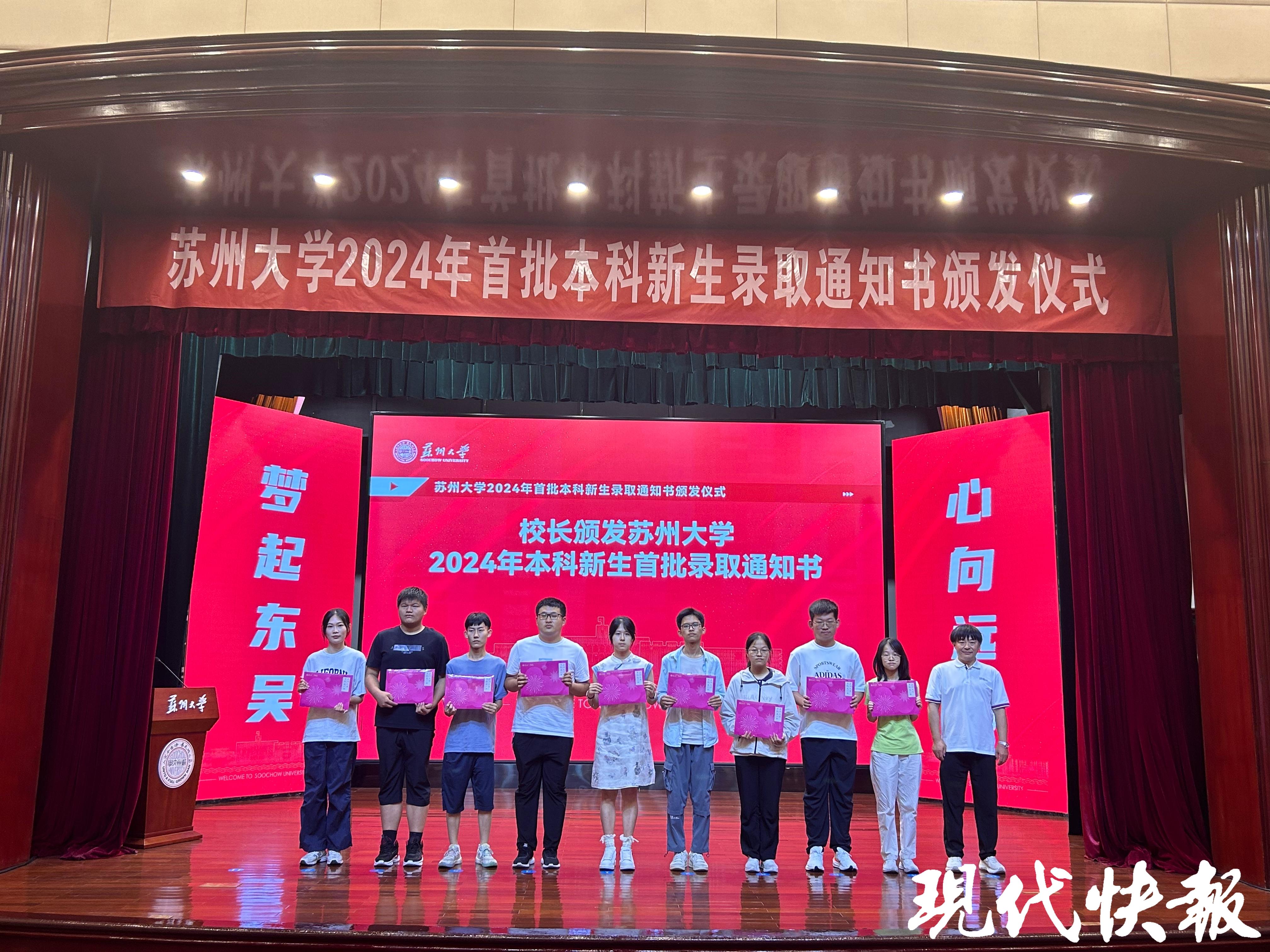 今年,www.优德88.cpm 的录取通知书主题是《刻印梦想 桃李东吴》,加入苏州的特色非遗桃花坞木版年画,将苏大底蕴和姑苏非遗进行了有趣的融合。现场,www.优德88.cpm 校长、中国工程院院士应汉杰颁发首批本科新生录取通知书,新生代表们分批上台合影。